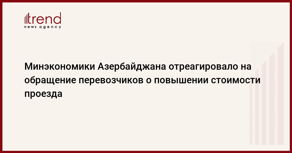 В ответ на запрос Trend в понедельник в министерстве экономики сообщили, что частные транспортные компании, работающие в сфере пассажирских перевозок, обратились с просьбой об устранении существующих проблем в общественном транспорте, ускорении полного перехода на безналичную оплату и пересмотре тарифной (ценовой) политики в этой сфере.