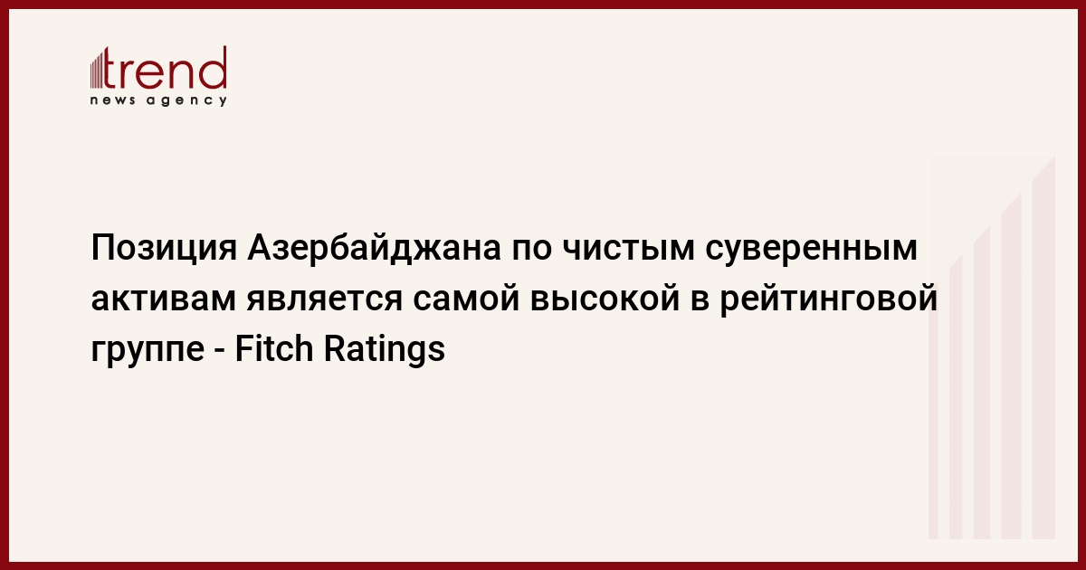 БАКУ /Trend/ - Чистая позиция суверенных активов Азербайджана, по прогнозам, увеличится на 14,3 процентных пункта до 77,6 процента в 2022-2024 годах, сообщает Trend в субботу со ссылкой на данные Fitch Ratings.
