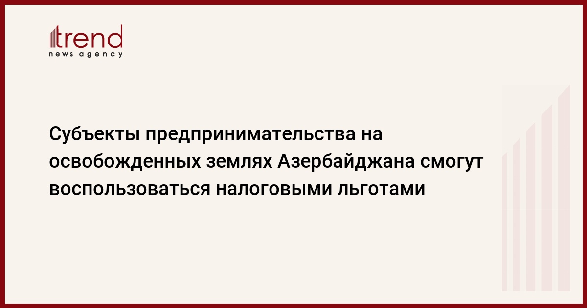 БАКУ /Trend/ - Субъекты предпринимательства на освобожденных от оккупации территориях смогут воспользоваться налоговыми льготами.