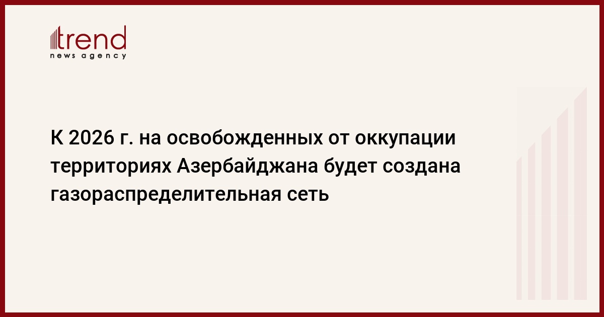 БАКУ /Trend/ - На освобожденных от оккупации территориях Азербайджана к 2026 году будет создана газораспределительная сеть.