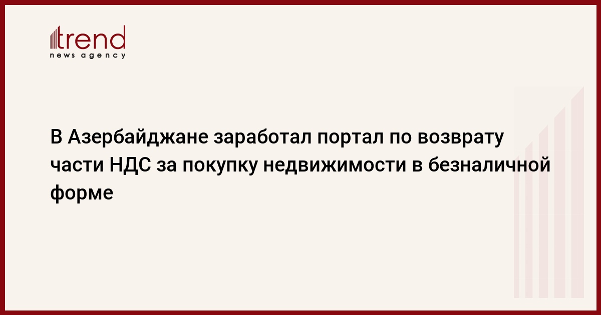 БАКУ /Trend/ - В Азербайджане введен в эксплуатацию портал по возврату части НДС за покупку жилых и нежилых площадей в безналичной форме.