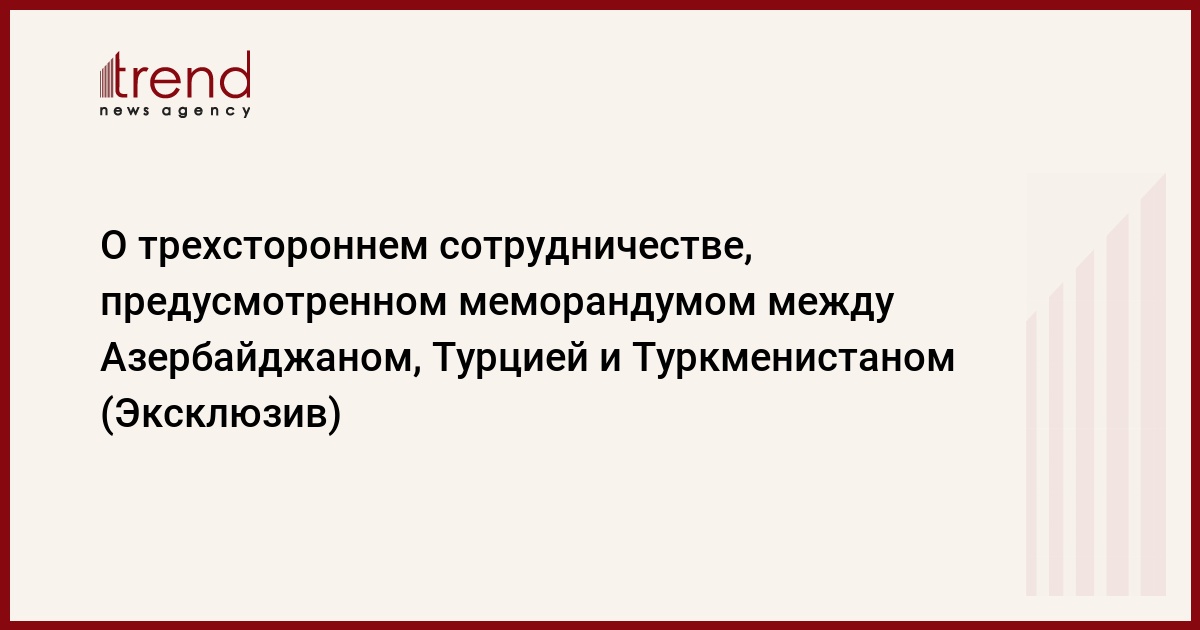 По информации Trend, соглашение предусматривает сотрудничество Азербайджана, Турции и Туркменистана в таких вопросах, как развитие мультимодальных перевозок, осуществляемых транзитом через территории трех государств, упрощение административных и визовых процедур для беспрепятственного передвижения транспортных средств и создания надлежащих условий для автоперевозчиков.