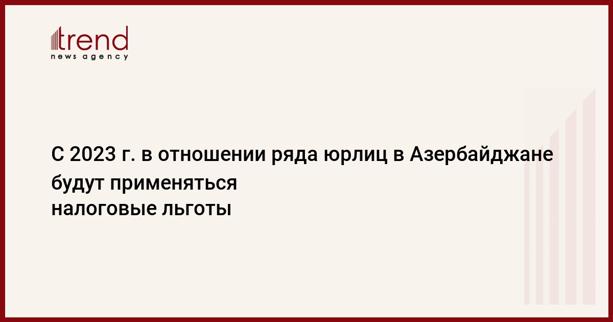 БАКУ /Trend/ - С 2023 года в отношении государственных юридических лиц, поддерживающих фонды, созданные в корпоративных и социальных целях, будут применяться налоговые льготы.