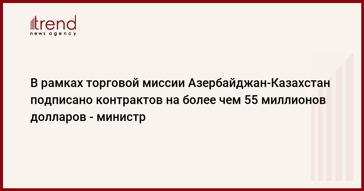 БАКУ /Trend/ - В рамках торговой миссии, которая проходит в Баку подписано восемь контрактов, стоимость которых превысила 55 миллионов долларов.
