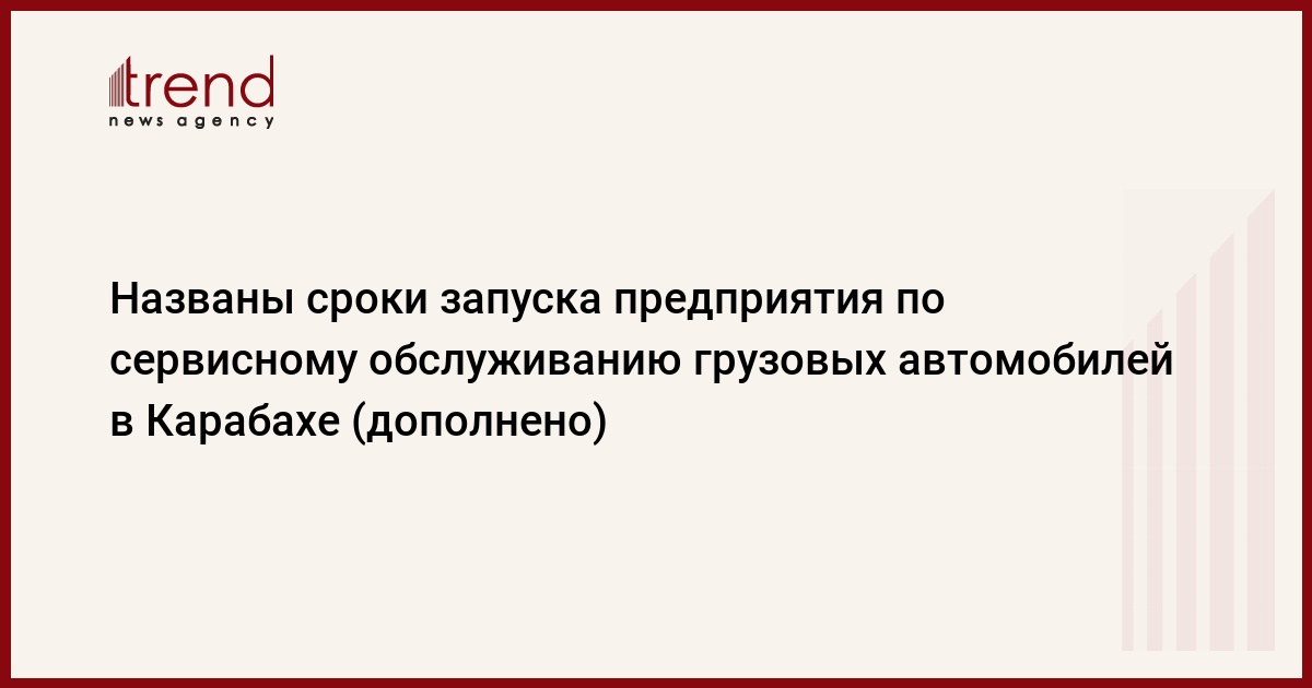 БАКУ /Trend/ - Совместное российско-азербайджанское предприятие ООО "Auto Leasing Azerbaijan" по сервисному обслуживанию грузовых автомобилей в Карабахе будет введено в эксплуатацию в июле 2023 года.