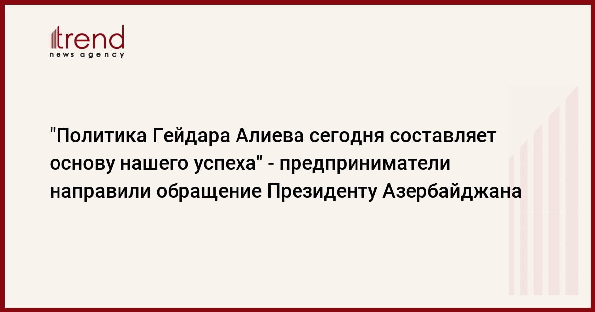 «В то время, когда торжественно отмечается 100-летний юбилей Гейдара Алиева, память о великом лидере вновь с глубоким уважением и почтением чтится азербайджанскими предпринимателями. Наши предприниматели, проявляющие преданность вечным идеям общенационального лидера, верят, что под Вашим руководством мы добьемся новых экономических успехов. Мы, участники конференции, посвященной 100-летнему юбилею великого лидера, заверяем Вас, что сделаем все возможное для внедрения новейших технологий, создания новых рабочих мест в освобожденном от оккупации Карабахе, возрождения жизни на наших плодородных землях, повышения благосостояния населения и в целом для развития нашей экономики», - говорится в обращении.