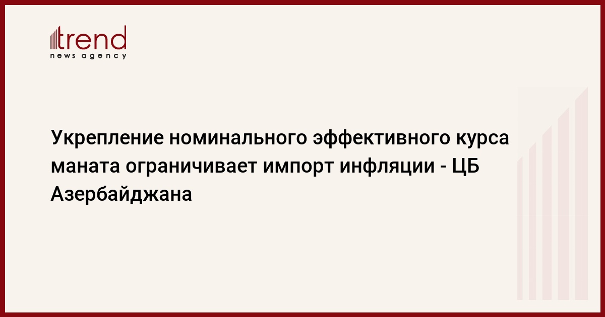 БАКУ /Trend/ - Укрепление номинального эффективного курса маната выступило в качестве одного из главных факторов, ограничивающих импорт инфляции.