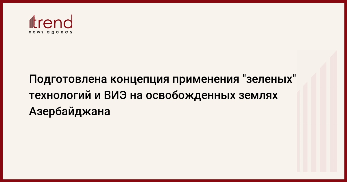 БАКУ /Trend/ - Подготовлена концепция применения "зеленых" технологий и возобновляемых источников энергии на освобожденных территориях Азербайджана.