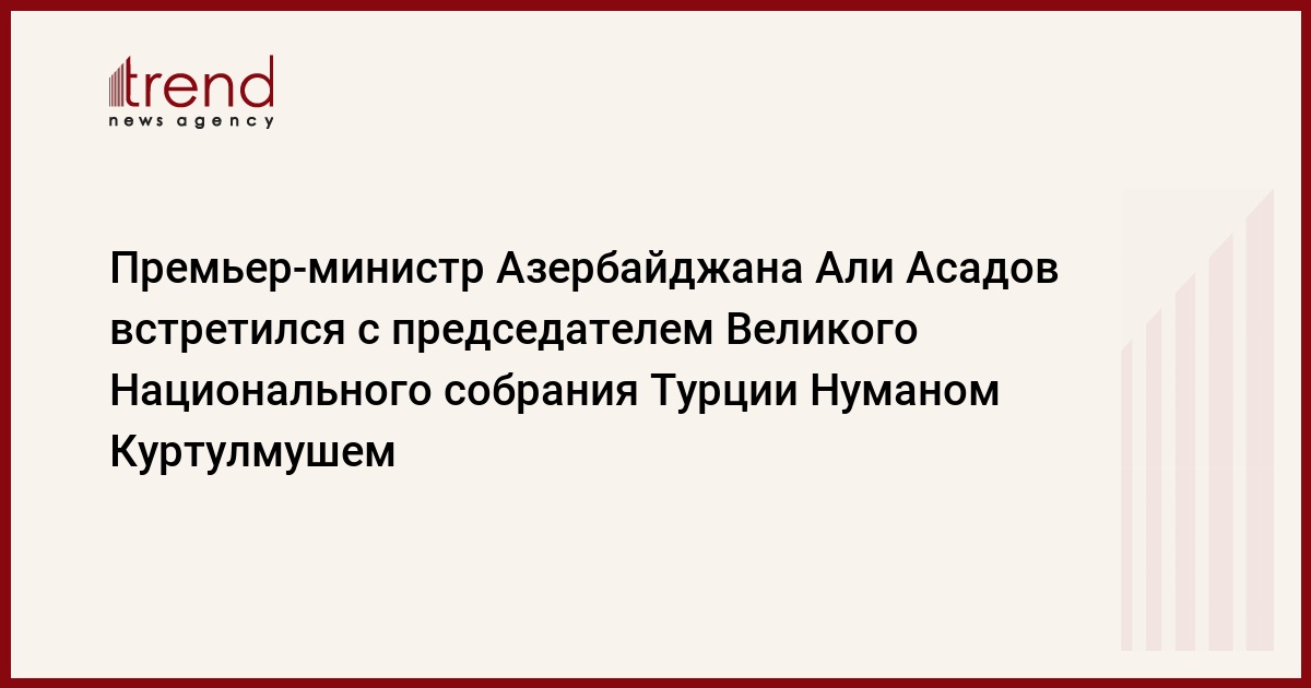 БАКУ /Trend/ - 12 июля премьер-министр Азербайджанской Республики Али Асадов встретился с председателем Великого Национального собрания Турции Нуманом Куртулмушем, находящимся с официальным визитом в Азербайджане.