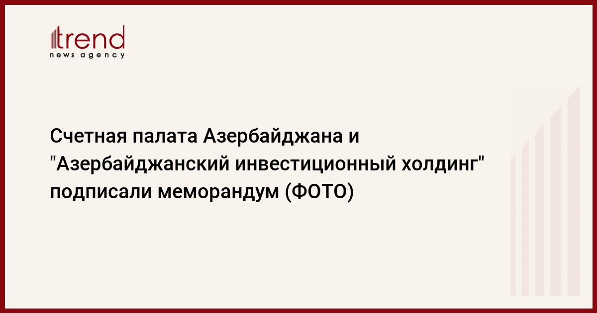 БАКУ /Trend/ - Счетная палата Азербайджана и ЗАО "Азербайджанский инвестиционный холдинг" подписали меморандум о взаимном сотрудничестве, сообщает в пятницу Trend.