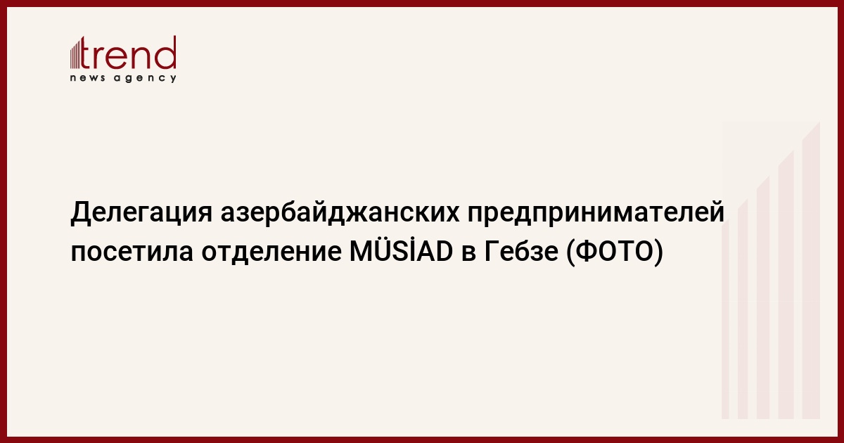 БАКУ /Trend/ - В рамках программы "Деловой мир - Саммит 100 лет" представители Ассоциации независимых промышленников и предпринимателей Турции (MÜSİAD) в Азербайджане - "MÜSİAD Азербайджан", члены правления Ассоциации клубов и субъектов малого и среднего бизнеса (KOBSKA), азербайджанские предприниматели посетили отделение MÜSİAD в турецком городе Гебзе.