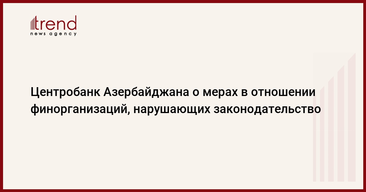 БАКУ /Trend/ - Центральный банк Азербайджана (ЦБА) принимает меры в отношении финансовых организаций, нарушающих законодательство страны, сообщает в четверг Trend.