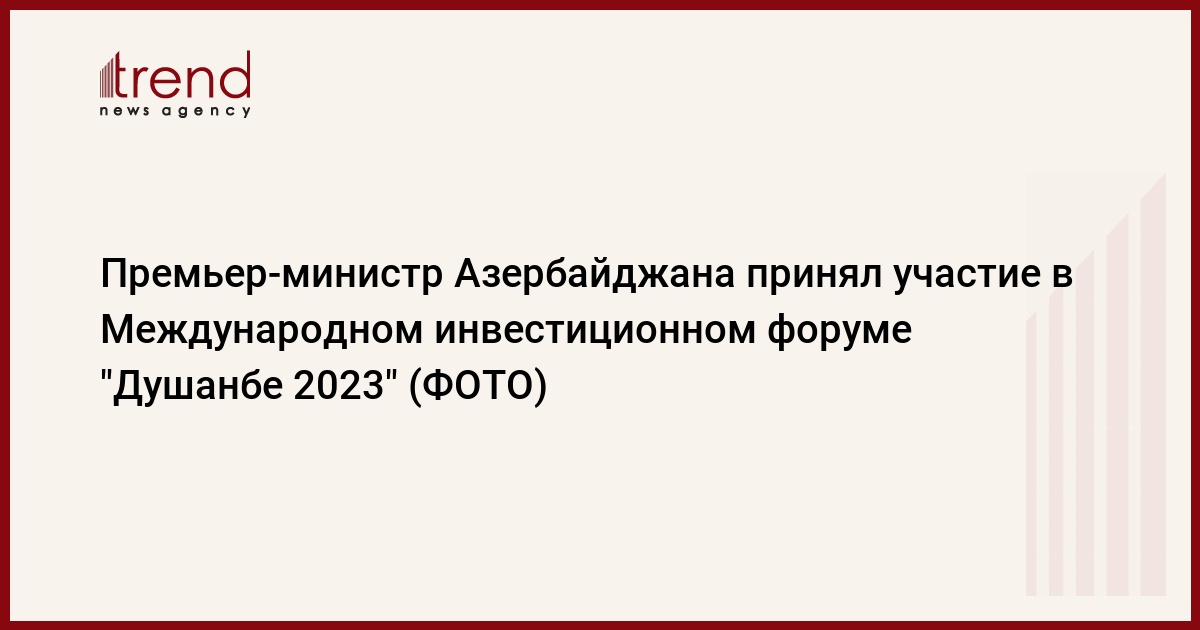 БАКУ/Trend/ - 29 сентября в столице Республики Таджикистан, городе Душанбе, состоялся Международный инвестиционный форум "Душанбе 2023".