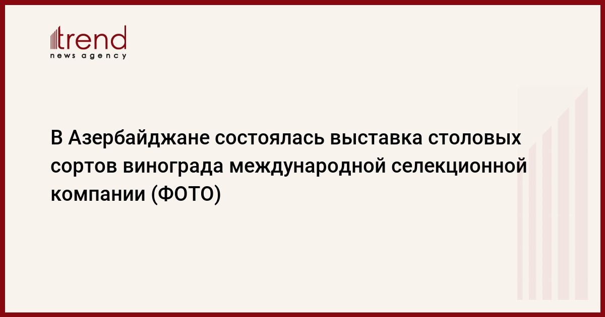 БАКУ /Trend/ - В Азербайджане состоялась выставка столовых сортов винограда израильской компании "Grapa Variety Ltd", сообщает в пятницу Trend.