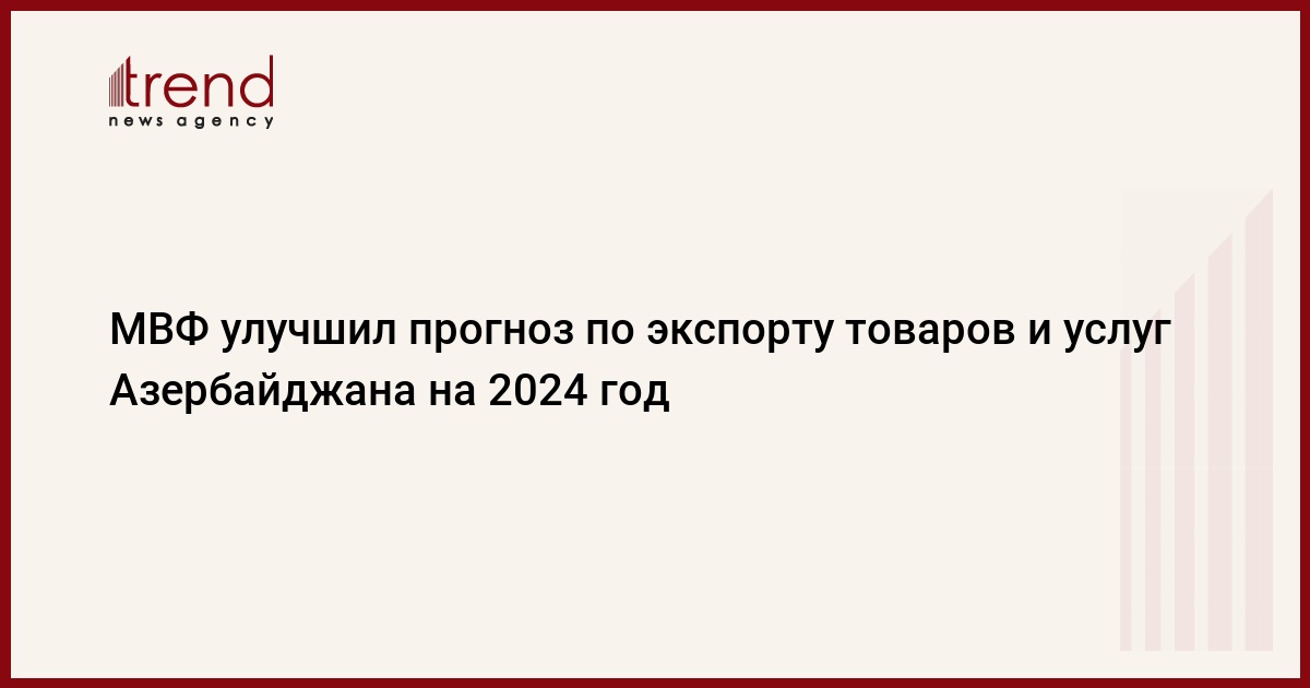 БАКУ /Trend/ - Международный валютный фонд (МВФ) ожидает, что экспорт товаров и услуг Азербайджана в 2024 году составит 30,6 миллиарда долларов США, в то время как в прошлом прогнозе экспорт составлял 28,9 миллиарда долларов, сообщает в субботу Trend.