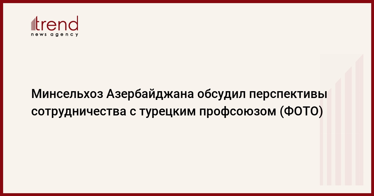 БАКУ/Trend/ – Министерство сельского хозяйства Азербайджана обсудило перспективы сотрудничества с турецким профсоюзом "Türk-Tarım Orman Sen", сообщает в среду Trend.