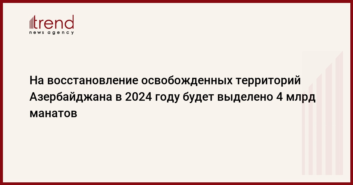 БАКУ /Trend/ - В целях реконструкции и восстановления городов и сел для обеспечения "Великого возвращения" на освобожденные от оккупации территории Азербайджана, создание современной инфраструктуры на этих территориях в государственном бюджете 2024 года предусмотрено 4 млрд манатов.