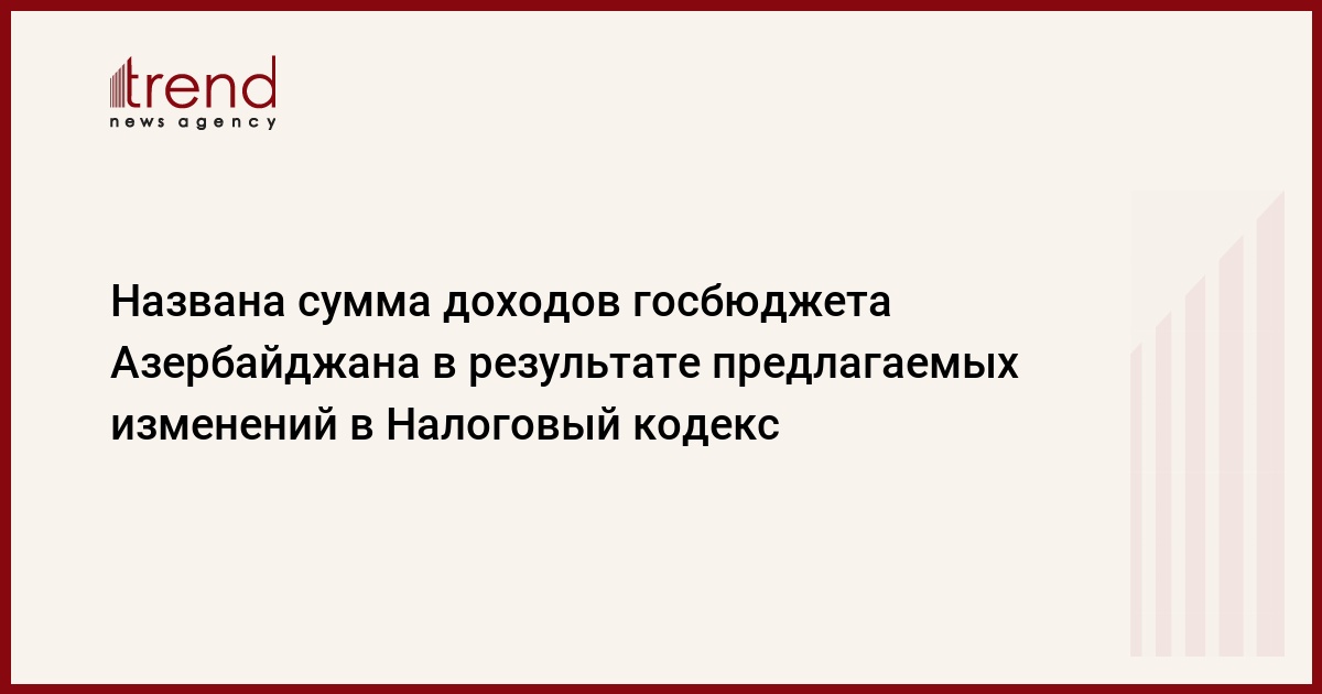 БАКУ /Trend/ - В результате предлагаемых изменений в Налоговый кодекс поступления в государственный бюджет составят в целом 42 миллиона манатов.