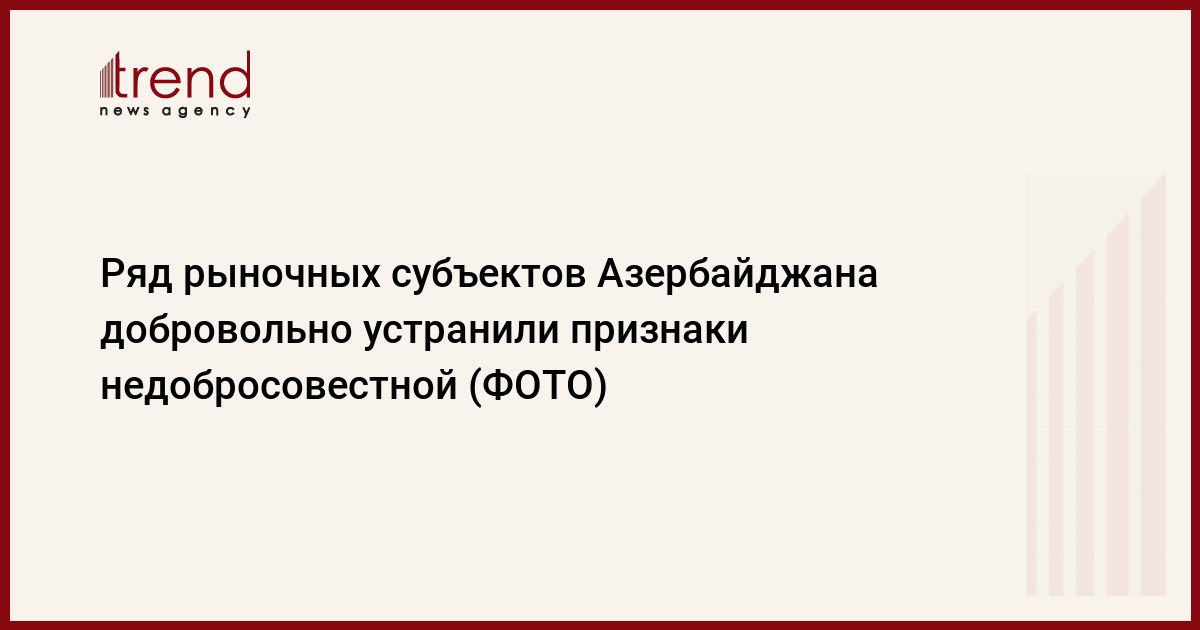 БАКУ /Trend/ - В период с января по октябрь 2023 года, благодаря мерам, принятым Государственной службой по антимонопольному надзору и контролю за потребительским рынком, 23 субъекта рынка добровольно устранили нарушения законодательства.