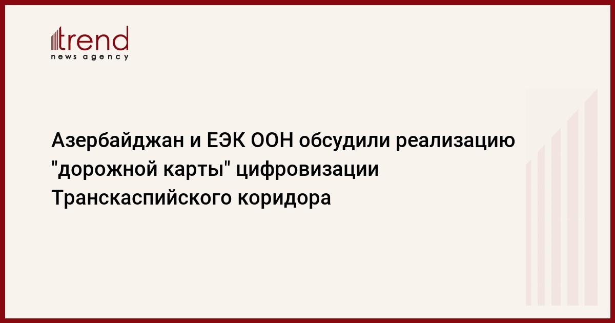 БАКУ /Trend/ - Азербайджан и Европейская экономическая комиссия ООН (ЕЭК ООН) обсудили реализацию "дорожной карты" цифровизации Транскаспийского коридора, сообщает в пятницу Trend.