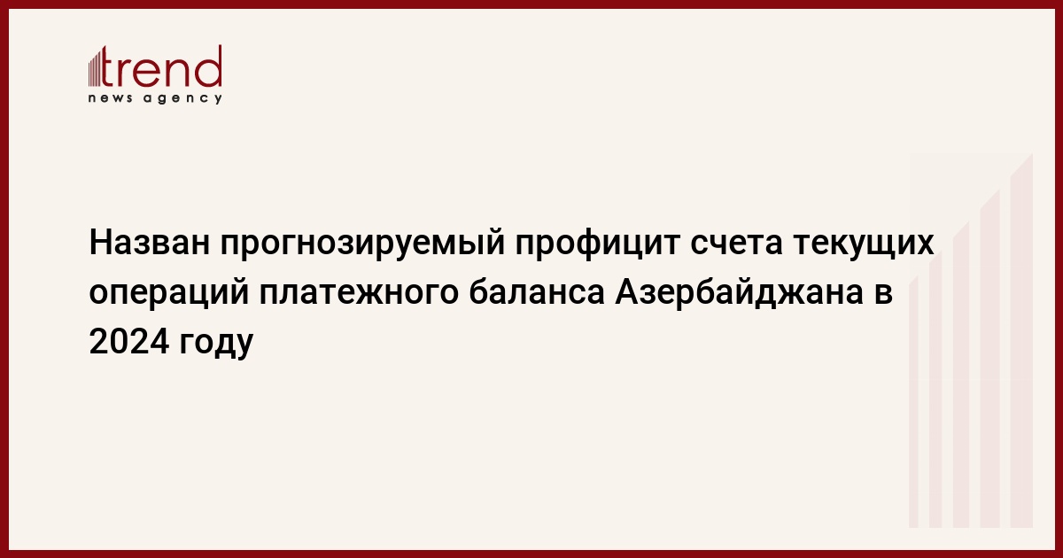 БАКУ /Trend/ - По прогнозам Центрального банка Азербайджана (ЦБА), профицит счета текущих операций платежного баланса в 2024 году составит 7-8 миллиардов долларов США.