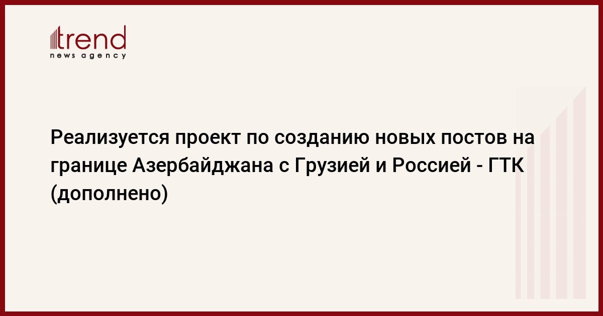 Отметим, что в эксклюзивном интервью Trend председатель (ГТК) Азербайджана Шахин Багиров заявил, что ГТК Азербайджана в настоящее время работает над проектированием нового пропускного пункта на границе с Грузией.