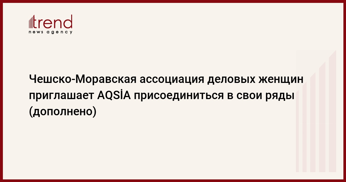 БАКУ /Trend/ - Чешско-Моравская ассоциация деловых женщин приглашает Ассоциацию по развитию женского предпринимательства в Азербайджане (AQSİA) присоединиться в свои ряды.