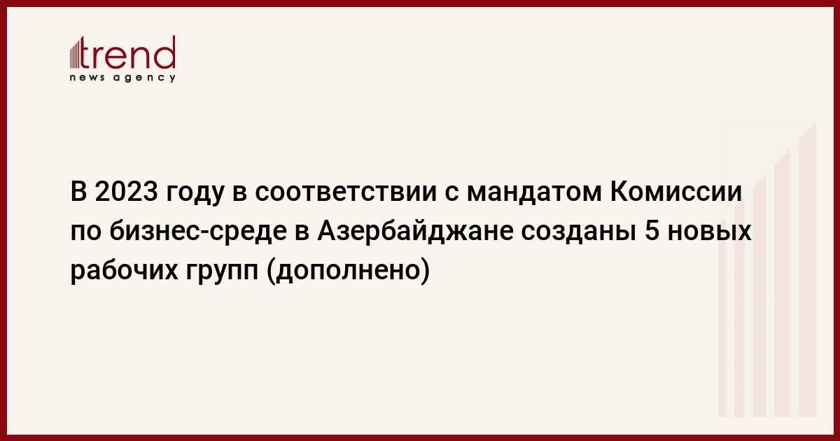 БАКУ /Trend/ - В 2023 году в соответствии с мандатом Комиссии по бизнес-среде и международным рейтингам по инициативе профильных государственных учреждений созданы 5 новых рабочих групп и 2 новые координационные группы по приоритетным направлениям.