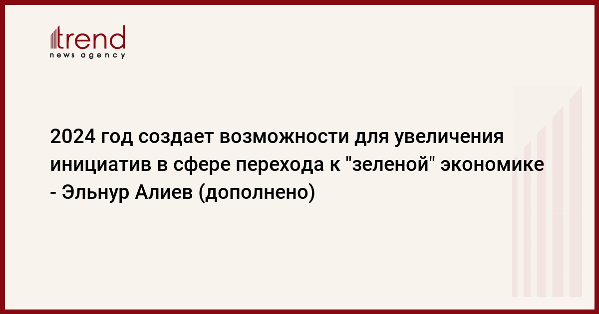 БАКУ /Trend/ - 2024 год создает возможности для дальнейшего увеличения инициатив в сфере перехода к "зеленой" экономике в Азербайджане.