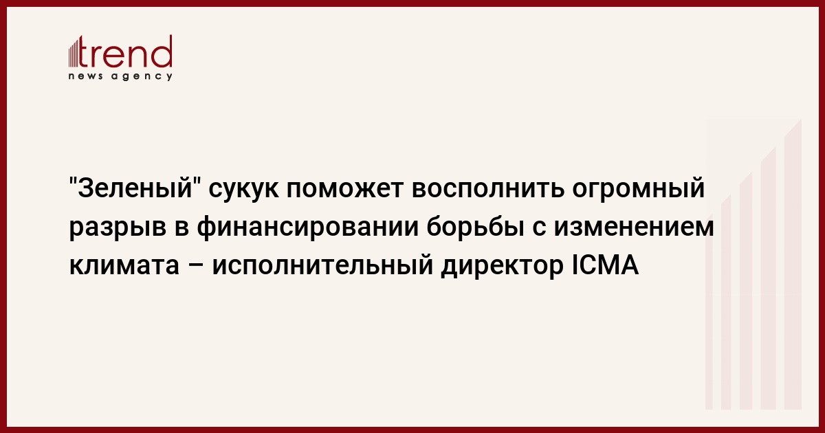 Как сообщает в понедельник Trend, об этом заявил исполнительный директор Международной ассоциации рынка капитала (ICMA) Брайан Паско, выступая на панельных дискуссиях по ускорению климатического финансирования с помощью "зеленого" и устойчивого сукук в рамках ежегодных совещаний Группы Исламского банка развития (ИБР) в Эр-Рияде.
