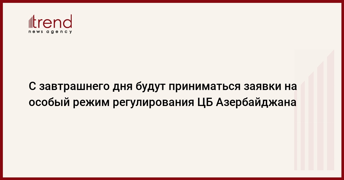 БАКУ /Trend/ - С 1 мая начнется прием заявок на особый режим регулирования Центрального банка Азербайджана (ЦБА).