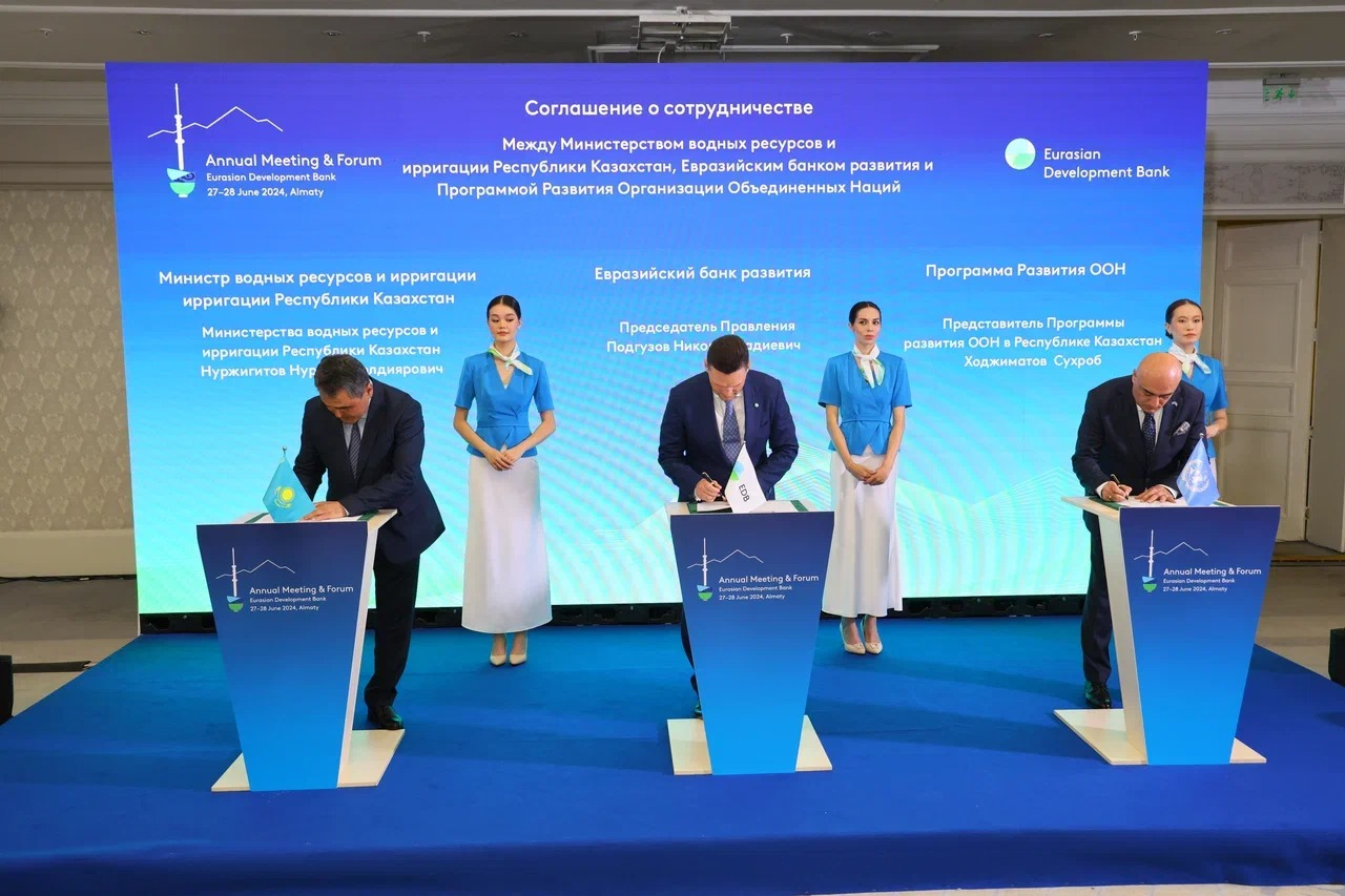 АЛМАТЫ /Trend/ - Евразийский банк развития (ЕАБР), министерство водных ресурсов и ирригации Казахстана и Программа развития ООН (ПРООН) подписали совместное соглашение о сотрудничестве в Алматы.