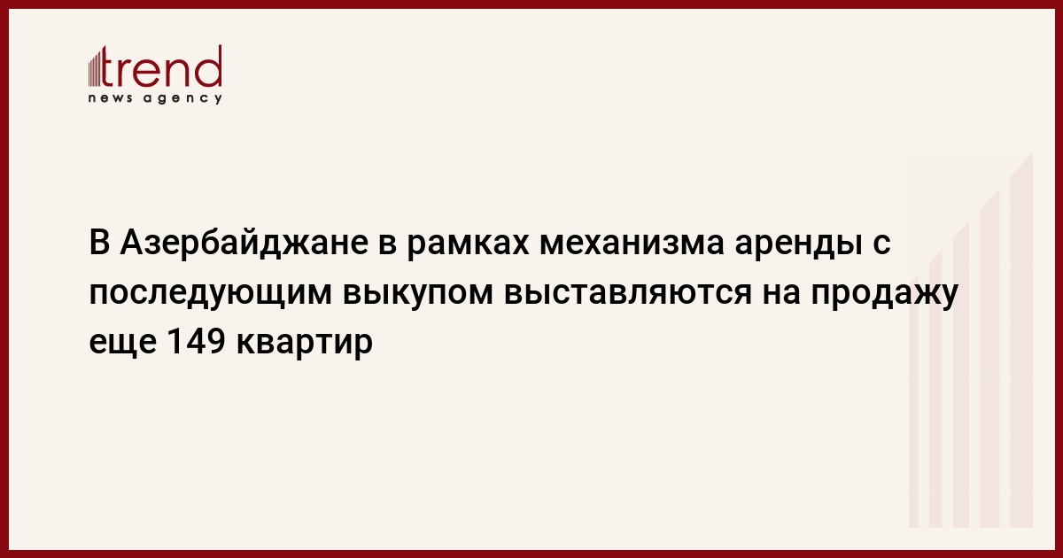 БАКУ /Trend/ - Ипотечный и кредитно-гарантийный фонд Азербайджана предоставляет гражданам еще 149 новых, полностью отремонтированных квартир в рамках механизма аренды с обязательством последующего выкупа, в жилом комплексе, расположенном на улице Мухаммеда Асадова в поселке Сарай Абшеронского района.
