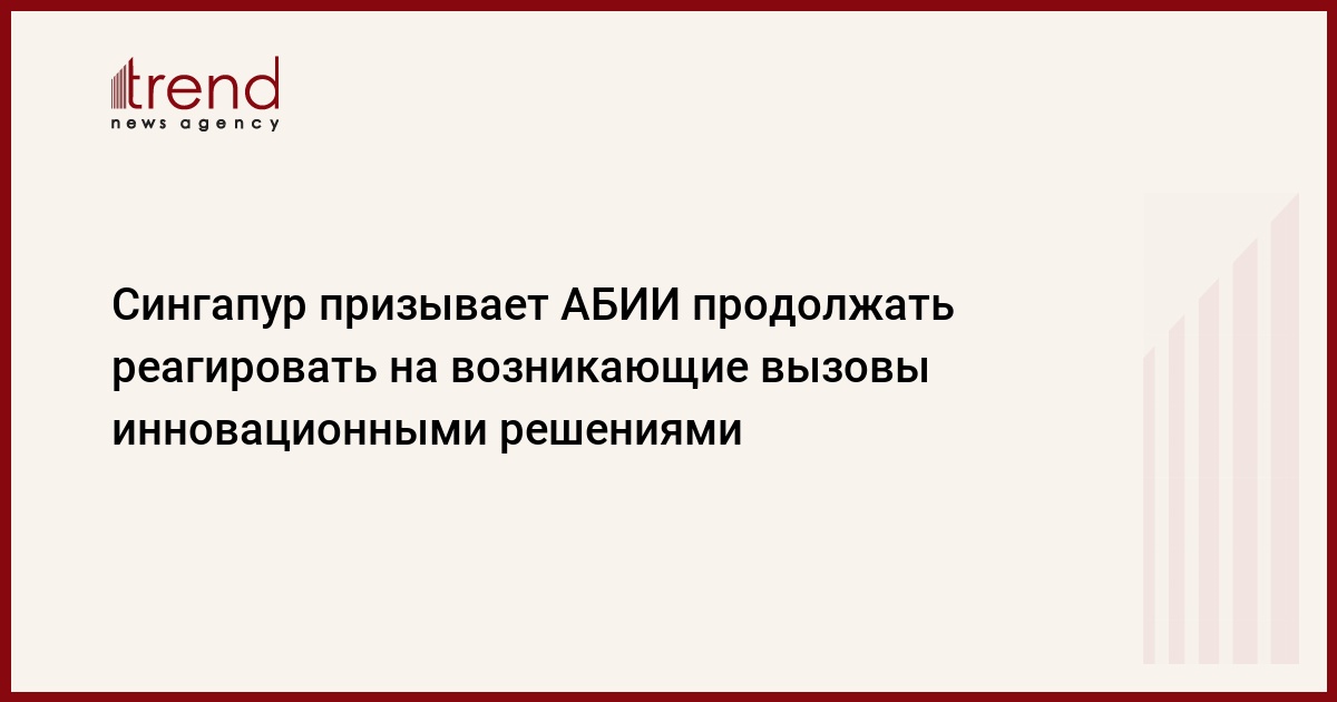 САМАРКАНД /Trend/ - Сингапур призывает Азиатский банк инфраструктурных инвестиций (АБИИ) продолжать реагировать на возникающие вызовы инновационными решениями.