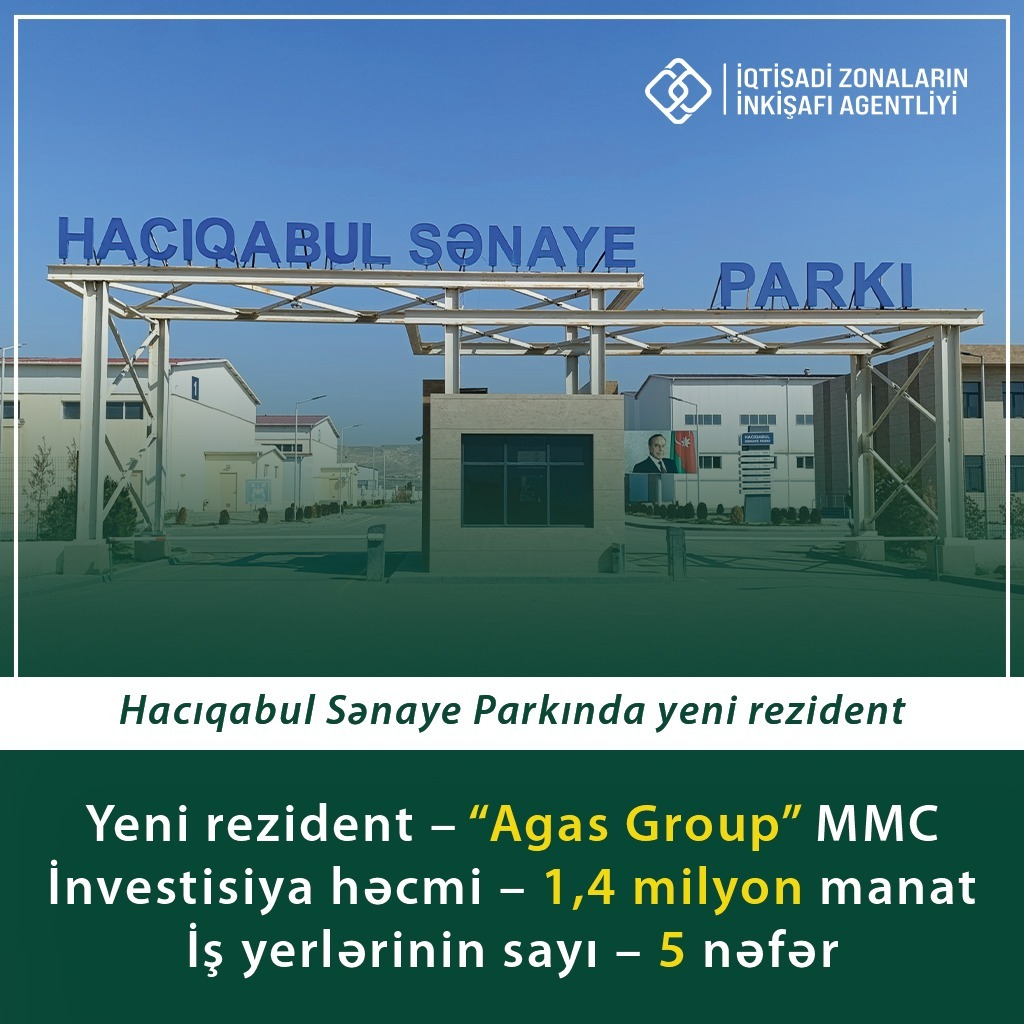 БАКУ /Trend/ - ООО "Agas Group" предоставлен статус резидента Гаджигабульского промышленного парка, находящегося в ведении Агентства по развитию экономических зон при министерстве экономики.