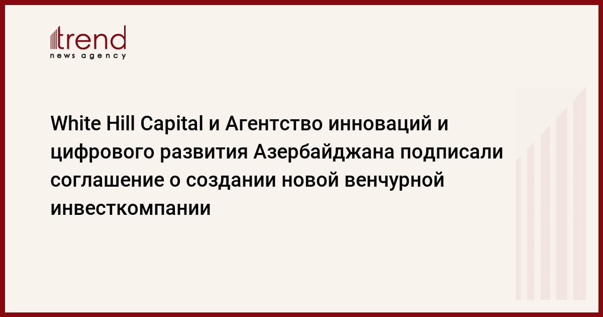 БАКУ /Trend/ - В рамках саммита INMerge в Баку состоялось подписание Учредительного соглашения о создании новой венчурной инвестиционной компании между венчурным фондом White Hill Capital и Агентством инноваций и цифровому развитию (İRİA).
