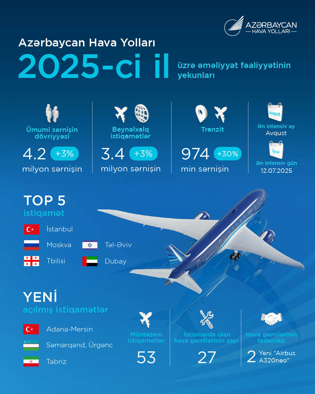 Таким образом, итоги 2025 года наглядно подтверждают последовательное и системное развитие авиационного сектора Азербайджана, его углублённую международную интеграцию, высокий уровень безопасности и укрепление стратегического лидерства в регионе.