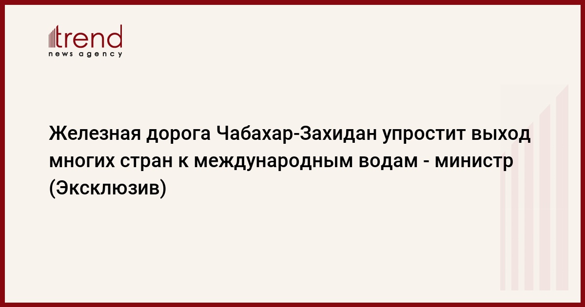 Железная дорога Чабахар-Захидан упростит выход многих стран к международным водам - министр (Эксклюзив)
