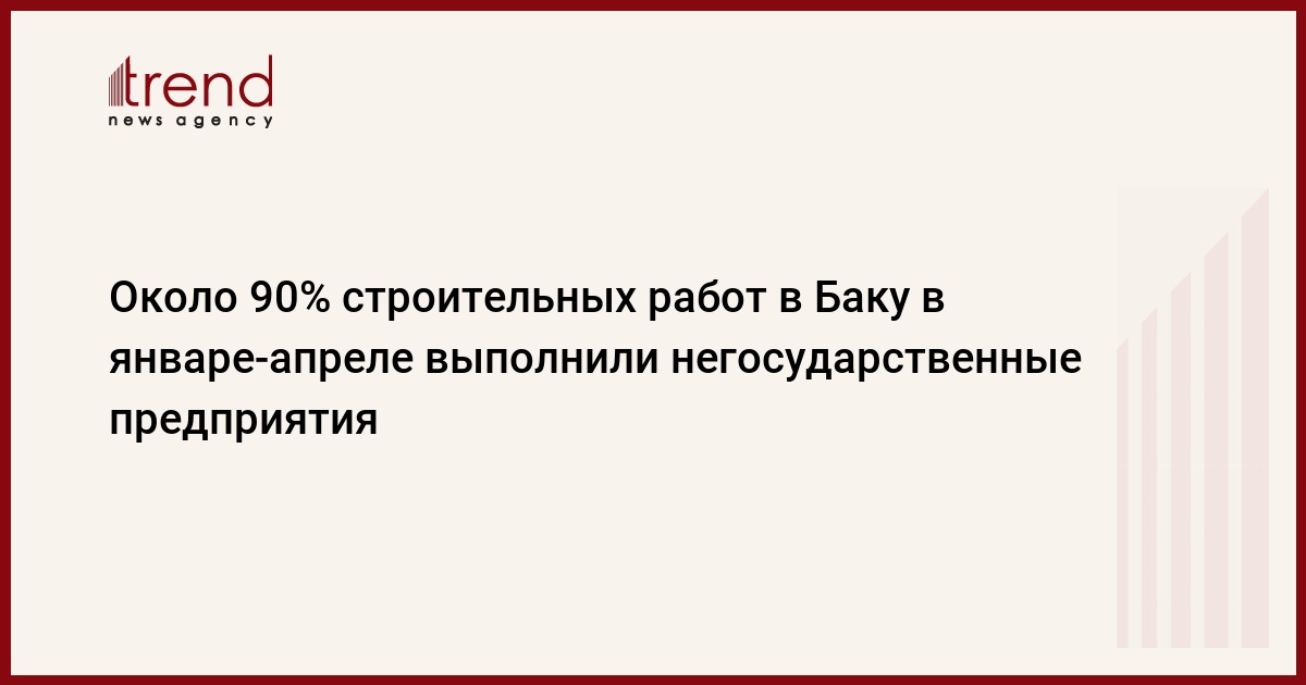БАКУ /Trend/ - В январе-апреле 2021 года на негосударственные строительные предприятия пришлись 89,5 процента от общего объема строительных работ в Баку.