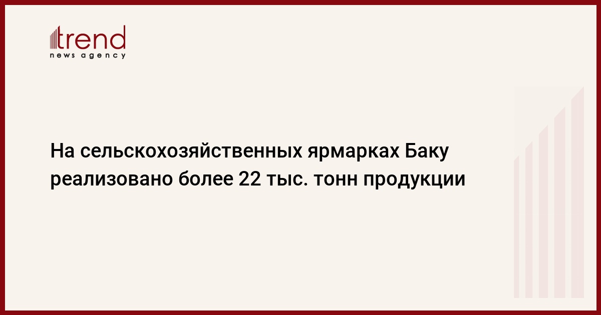 Азербайджан, Баку /корр. Trend С.Бабаева/ На проведенных сельскохозяйственных ярмарках на рынках районов Баку (с июля 2006 года до середины сентября 2007 года) реализовано более 22 тыс. тонн продуктов, сообщил глава пресс-службы министерства сельского хозяйства Азербайджана Муртузали Гаджиев. На последней ярмарке 15-16 сентября выставлено 405,8 тонн продуктов.