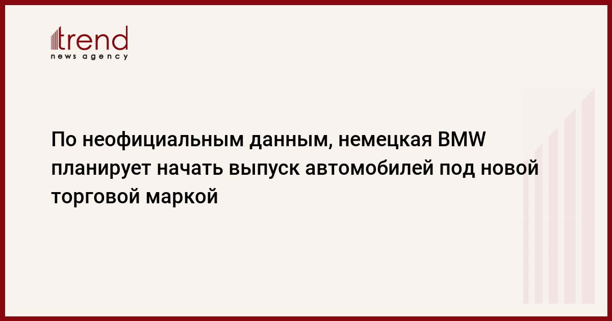 По неофициальным данным, немецкий автомобильный концерн BMW AG планирует начать выпуск пассажирских автомобилей под новой торговой маркой в дополнение к принадлежащим компании брендам BMW, Mini и Rolls-Royce. Как передает Reuters со ссылкой на немецкие СМИ, запуск новой марки может стать частью плана будущего развития компании, который должен быть обнародован