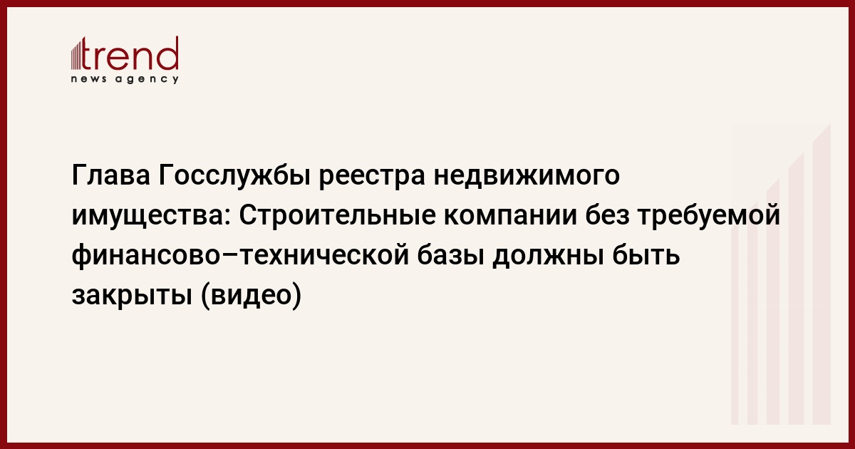 Азербайджан, Баку /корр. Trend У.Исмайлова/ Все работающие в Азербайджане строительные компании без наличия финансово-технической базы, требуемой для этого сектора, должны быть закрыты. Так сказал во вторник глава Государственной службы реестра недвижимого имущества Ариф Гарашов.