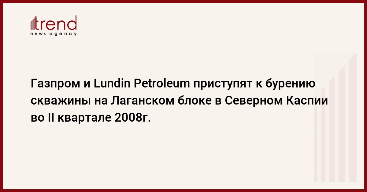 ОАО "Газпром" и шведская нефтегазовая компания Lundin Petroleum AB приступят к бурению скважины "Морская N1" Лаганского блока, расположенного в северной части акватории Каспийского моря, во II квартале 2008г., сообщает пресс-служба российской компании. Такое решение принято в связи с наступлением в Северном Каспии зимнего сезона. Также в 2008г.
