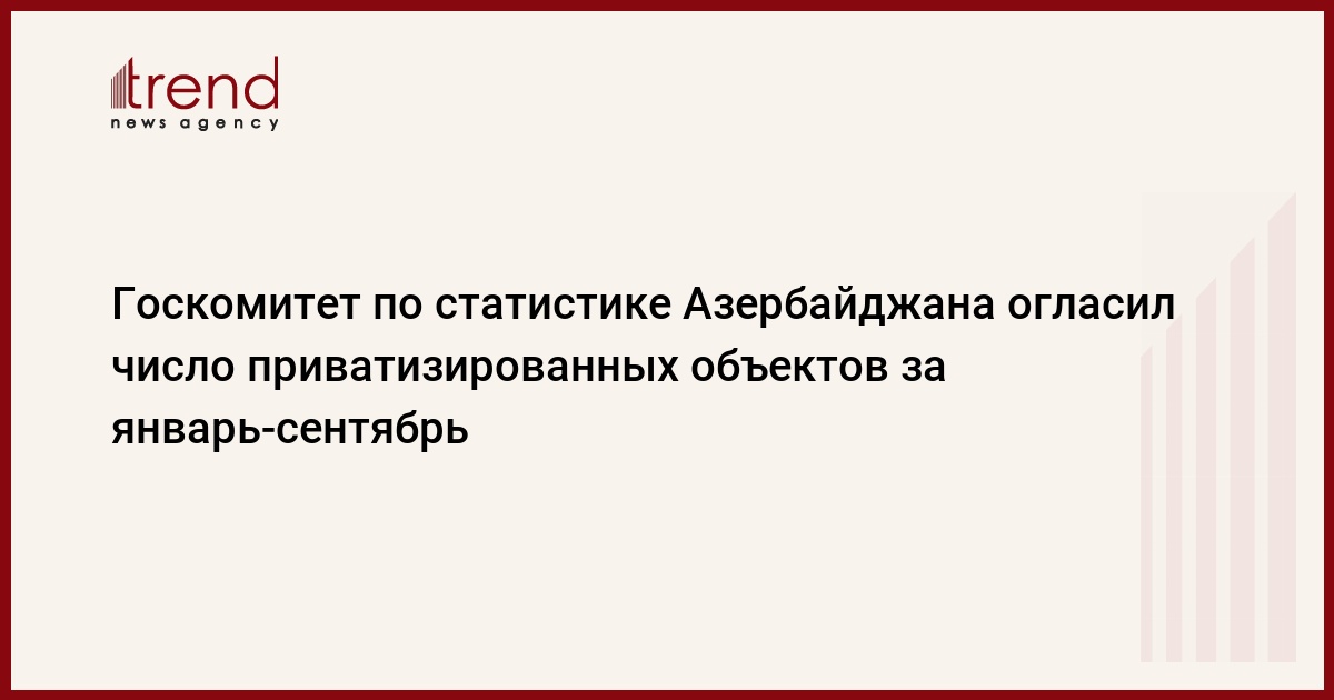 Азербайджан, Баку /корр. Trend У.Исмайлова/ За январь-сентябрь в Азербайджане было приватизировано 47834 малых предприятий и объектов на общую сумму 174,1 млн. манатов, говорится в сообщении государственного комитета по статистике.