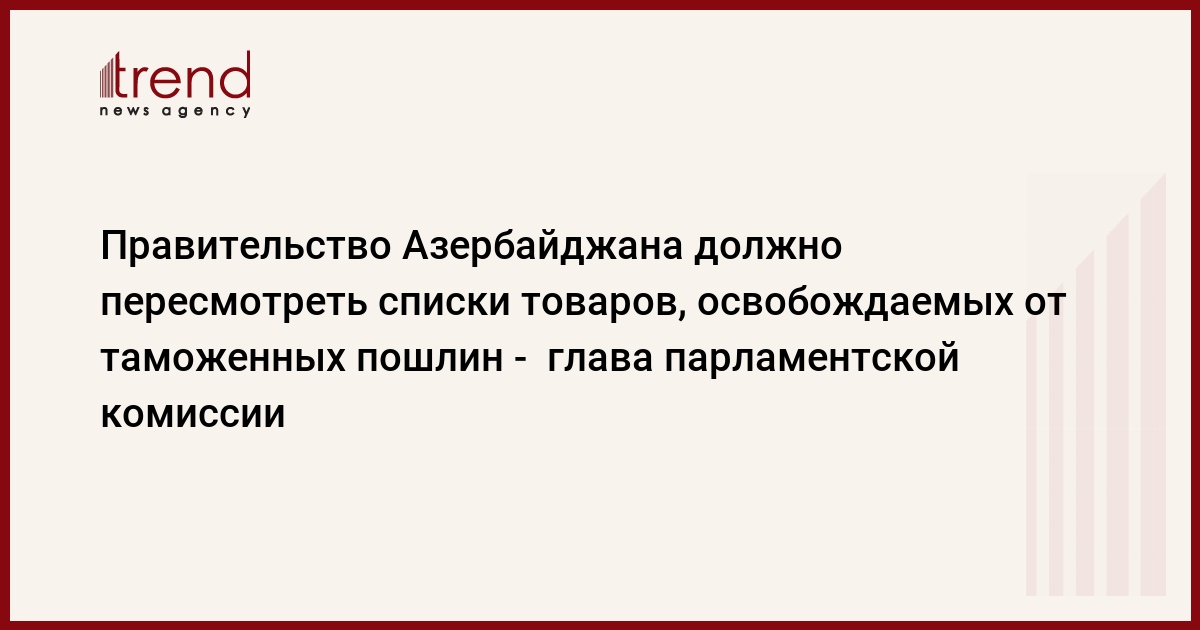 Азербайджан, Баку /корр. Trend И.Халилова/ Правительство Азербайджана должно пересмотреть список товаров, освобождаемых от таможенных пошлин и сборов при импорте,