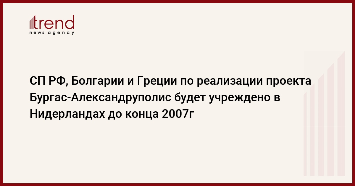 Международную проектную совместную компанию (совместное предприятие, СП)РФ, Болгарии и Греции, создаваемую для реализации проекта нефтепроводаБургас-Александруполис, планируется учредить в Нидерландах. Как говорится всообщении правительства Болгарии, такое решение было принято на встрече вАфинах русских, болгарских и греческих акционеров проекта, завершившейсяподписанием трехстороннего протокола между ними. Международный консорциум,по планам акционеров, может быть создан уже до конца 2007г.