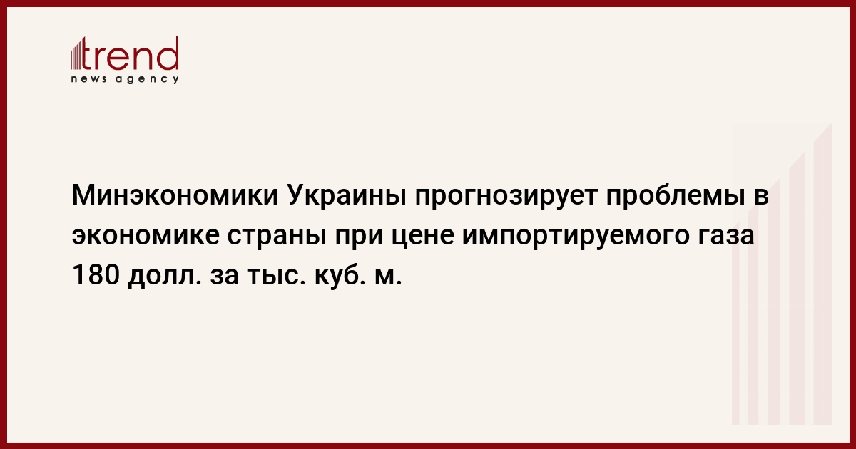 Если цена на импортируемый Украиной природный газ составит 180 долл. за 1 тыс. куб. м, это приведет к серьезным проблемам в украинской экономике, прежде всего, в химической отрасли. Как передает " РБК -Украина", об этом сообщил сегодня на брифинге в Киеве и.о.министра экономики Украины Анатолий Кинах. Он отметил, что поэтому вопрос цены на газ для Украины в 2008г. ипоследующих годах будет взаимосвязан с вопросом тарифа на его транспортировку в страны Евросоюза.А.Кинах также добавил, что Украина может на 100% обеспечить себя внутренними энергоресурсами. По его словам, на Украине есть запас энергетического угля в объеме 400 млрд т, чего хватит на 400 лет; собственных запасов урана Украине хватит на 100-120 лет. А.Кинах отметил,что Украина также может снизить свою зависимость от импортного газа путем сокращения его годового потребления на 15-20 млрд куб. м. Напомним, в 2006г. объем потребления газа на Украине составил около 70 млрд куб. м.В то же время и.о.министра констатировал, что на сегодня Украина входит в первую пятерку стран по уровню энергоемкости экономики. А.Кинах отметил, что больше всего потребляют энергоресурсов горно-металлургический комплекс, химическая промышленность и теплоэнергетика.Комментируя повышение цены закупки туркменского газа, который Россия впоследствии поставляет Украине, А.Кинах отметил, что Украина должна вернуться к схеме клиринговых расчетов за газ с Туркменистаном и восстановить привязку стоимости газа к цене на транзит. По его мнению, правительство Украины в 2005г. допустило ошибку, когда отошло от схемыклиринговых расчетов за газ с Туркменистаном и отменило увязку стоимости газа для Украины с ценой на транзит.