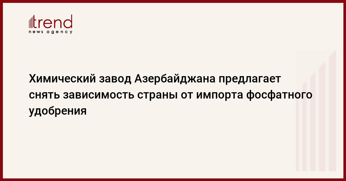 Азербайджан, Баку, 13 февраля /корр. Trend И.Халилова/ Для частичного снятия зависимости аграрного сектора Азербайджана в фосфатном удобрении Сумгаитский суперфосфатный завод готов возобновить его производство, приостановленное с 1992 года, сказал глава предприятия Эльдар Исмайлов. Мероприятия по началу выпуска на первом этапе 200 тыс. тонн в год предусмотрены в программе оздоровления предприятия, оцениваемой в 4,85 млн. манатов.