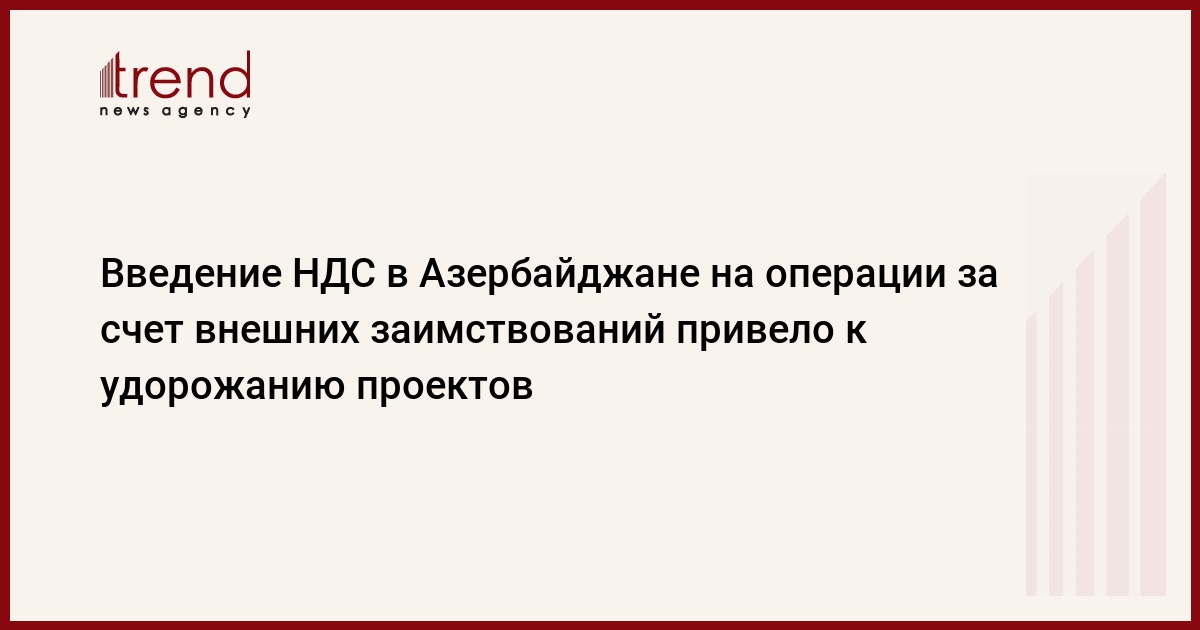 В данном случае расширение госдоли произошло из-за введения с этого года налога на добавленную стоимость (НДС) на покупку товаров (работ, услуг) и их ввоз за счет кредитов и займов международных организаций, правительств иностранных государств, а также за счет кредитов и займов, выделенных иностранными юридическими и физическими лицами на основании межгосударственных и межправительственных соглашений, лицом, получающим кредиты и займы за счет этих средств, а также, если доля азербайджанской стороны не превышает 49 процентов в проектах, осуществляемых за счет этих кредитов и займов. До 2008 года операции, проводимые в рамках таких проектов, облагались НДС по нулевой ставке.