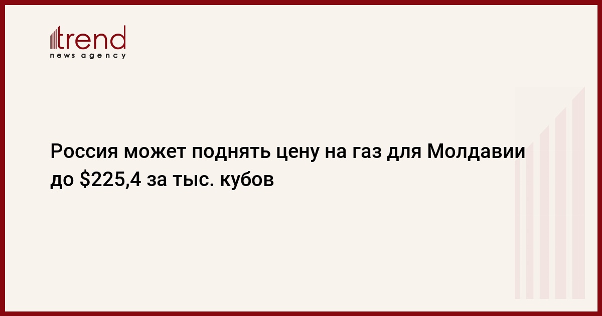 Цена российского газа для Молдавии может к концу 2008 года вырасти до 225,4 доллара за тысячу кубометров с нынешних 187,8 доллара, говорится в справке Минэкономразвития РФ, подготовленной к предстоящей в среду встрече премьеров двух стран в Москве, передает РИА Новости .